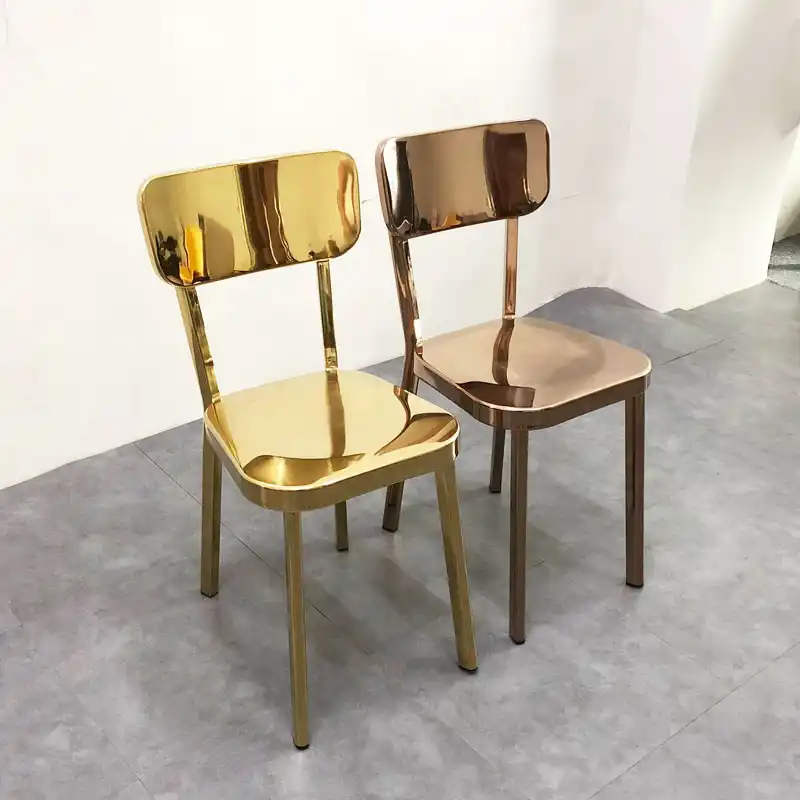 With the ultimate quality assurance and at bargain prices, buy in large quantities without any regrets. Metal style dining chairs, suitable for indoor and outdoor environments such as dining room, restaurant, and patio. 20.5 w set of 2 dining chair angular polished rose gold frame faux leather. Therefore, it can be used indoors and outdoors. Our xavier pauchard tolix style chairs in metal rose gold colour have been finished to give them a beautiful shiny look.