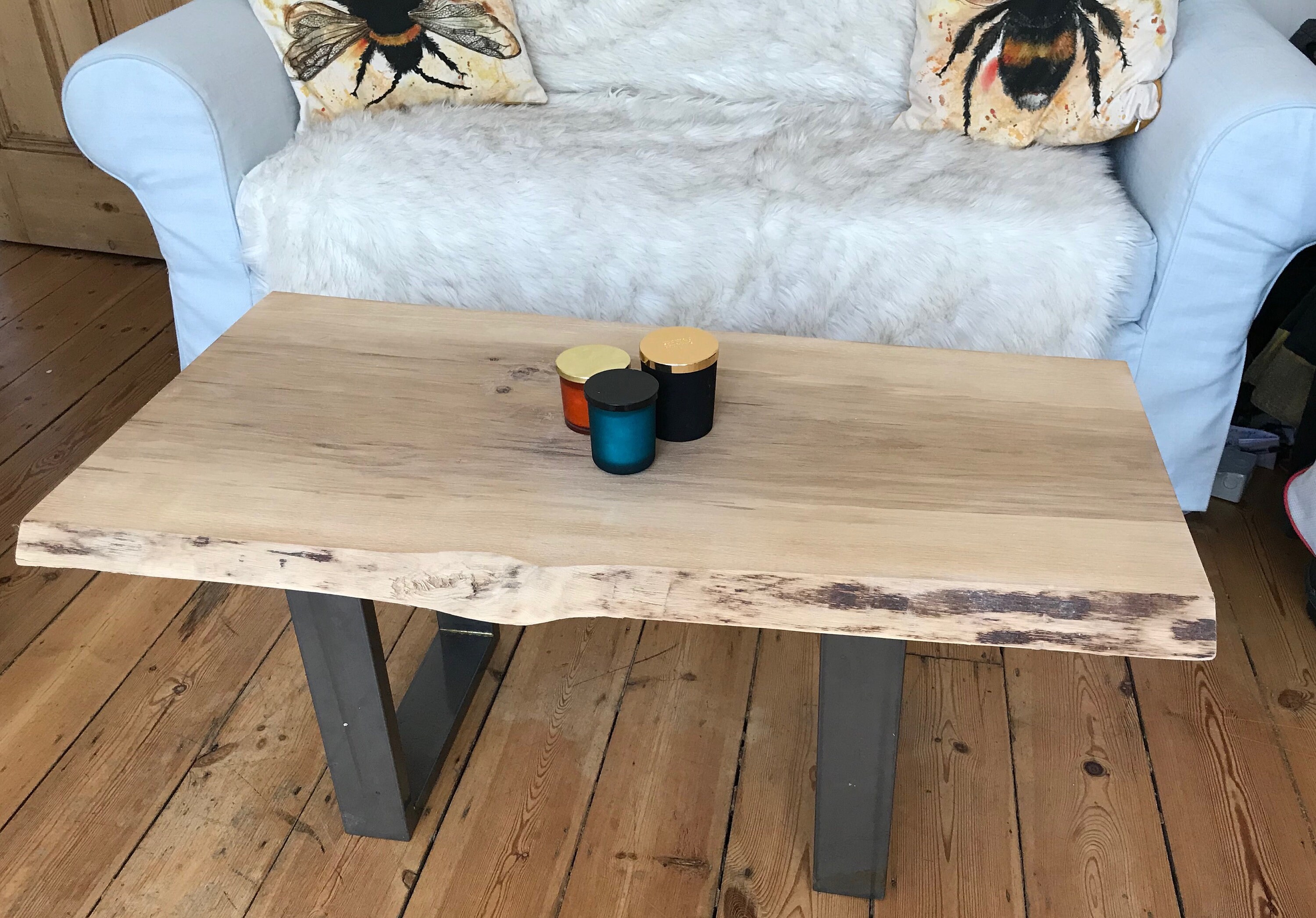 Straight waney edge oak coffee/side table. Here is the bespoke live edge table spec: Waney edge timber, cut and delivered to your door. Kiln dried waney edge boards are the staple of our woodshed. Here is a sapele and maple basket weave chopping board that i just finished today.